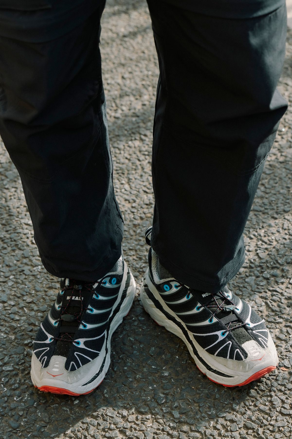 フリース=ディガウェル パーカ=カンペール パンツ=エーシージー シューズ=ホカ 帽子=シュプリーム 腕時計=ガーミン