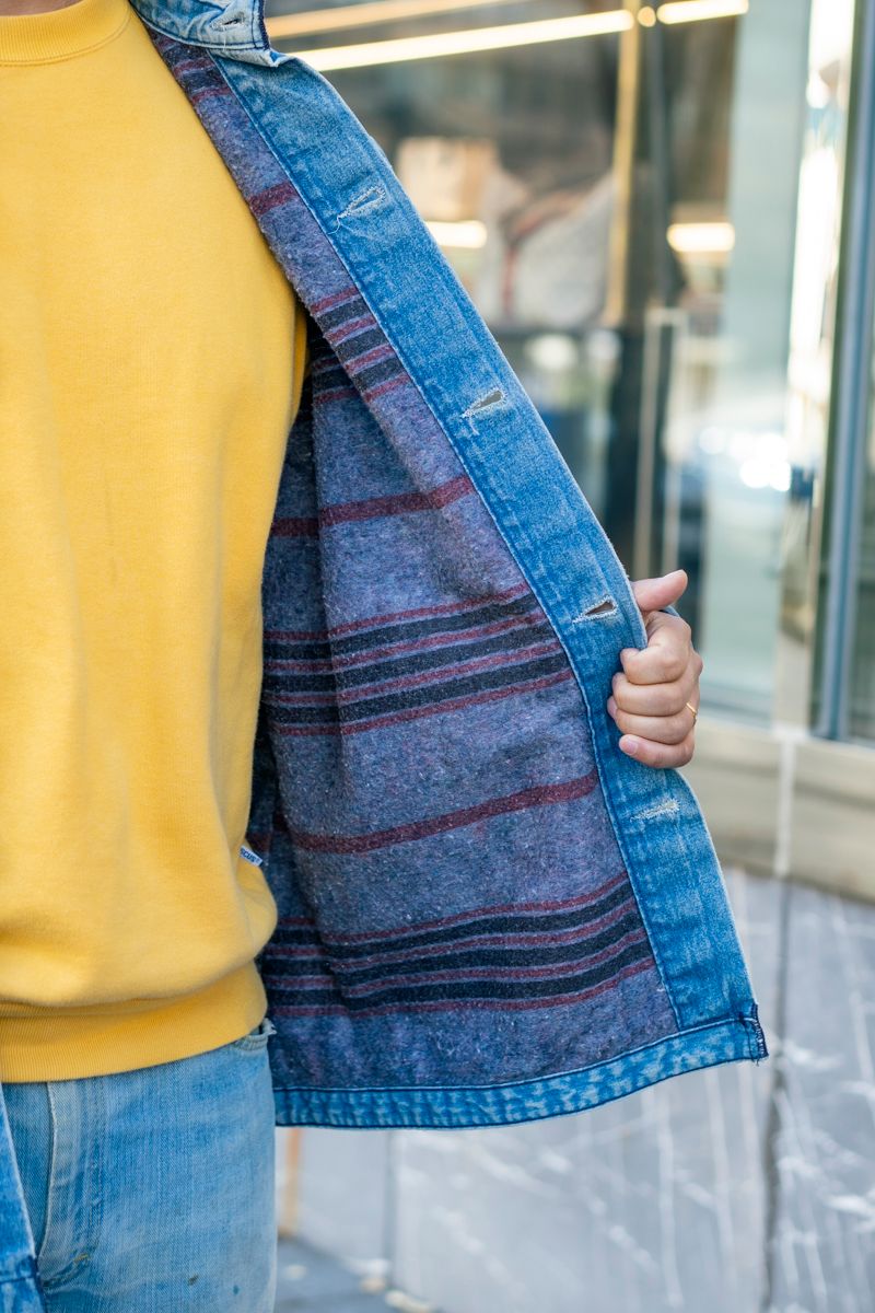 ▶︎佐々木さんのスナップをすべて見る佐々木 純さん(38歳)ビッグベンのカバーオールにリーのデニム。そんなラギッドなアメカジスタイルを、ディスカスのイエロースウェットが和らげる。落ち着いた色味を選ぶことで、ヴィンテージ特有の風合いとも見事に調和。レイバンのアイウェアといった時代を語れる小物選びも秀逸だ。