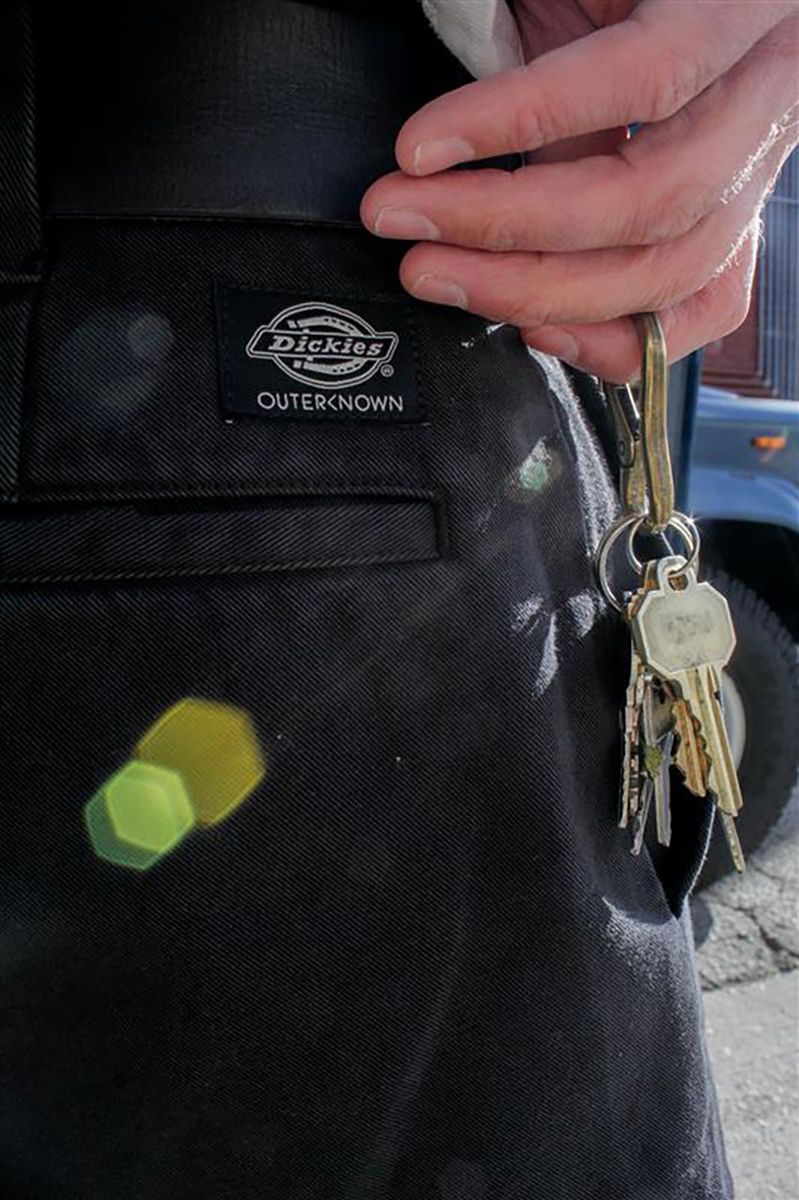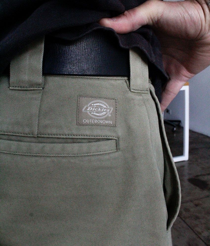 第2弾となる今作の着想源は、ジョン・ムーアが幼少期から愛用してきたディッキーズのチノパンツへの記憶と敬意。素材にはオーガニックコットン100%を採用し、当時のディッキーズを彷彿させるシルエットを忠実に再現した。
