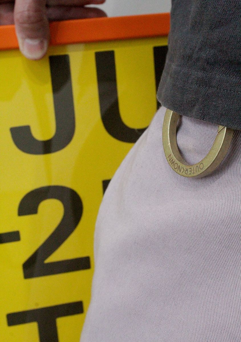 フロントは前回の金具ボタンから通常ボタンへと変更され、よりクリーンで洗練された印象に。オリジナルブランドロゴは同系色ラベルで控えめに配され、アクセントとしてヴィンテージ加工を施したロゴ入りカラビナを付属。ワークウェア由来の機能美と、アウターノウンらしい上質で穏やかな感性が共存する仕上がりだ。