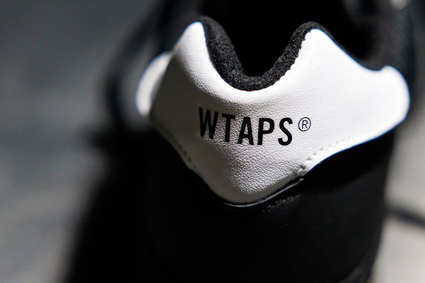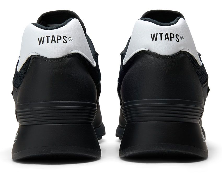 アッパーはプレミアムレザーを用いたブラックを基調に構成。クラシックなランニングシューズを象徴するメッシュのアンダーレイを組み合わせ、ヒールカウンターにはホワイトで切り替えたダブルタップスロゴを配置する。インソールにはダブルネームロゴを配し、細部に至るまで両ブランドのアイデンティティが息づく仕上がりとなっている。