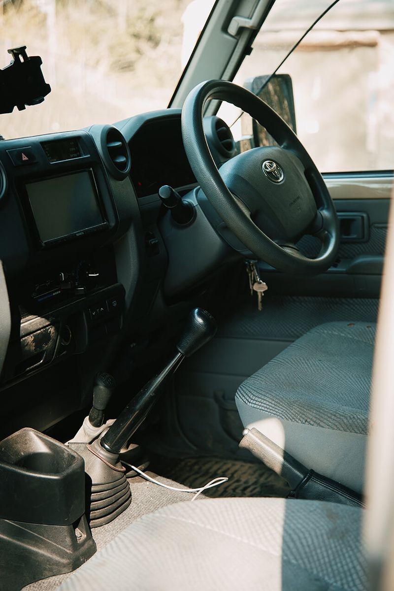 「内装は武骨そのものです。特に70に関しては居住性なんて言葉は最初から除外されている。とにかく頑丈で、壊れないことに特化してますから。板バネだし、ただのトラックですよ。乗り心地は正直言って、最悪です(笑)」。