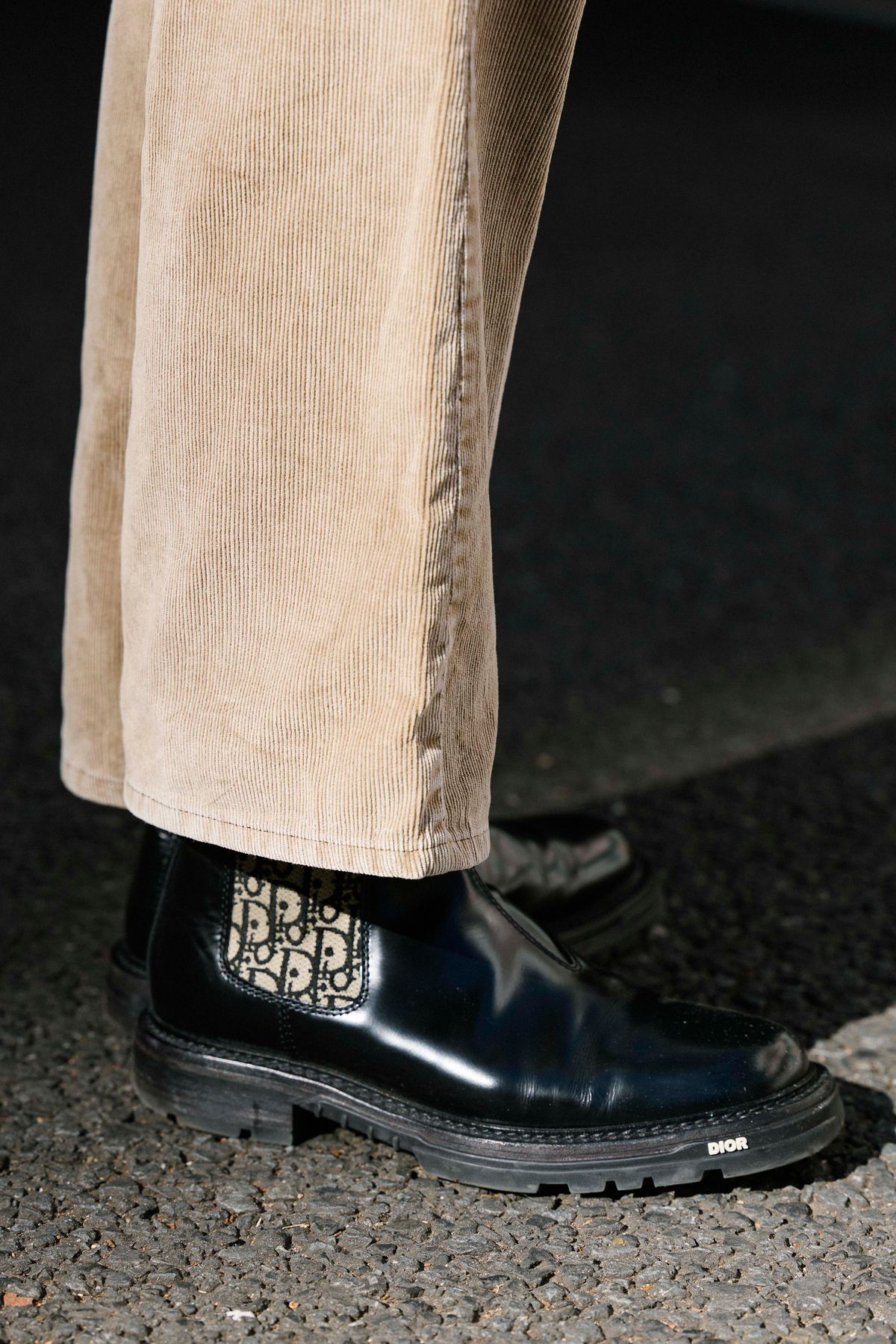 シューズはブラックレザーで引き締めつつ、ディオールのサイドゴア部がやはりトップスやパンツとカラーリンク。見えにくい部分まで徹頭徹尾、洒落ている。