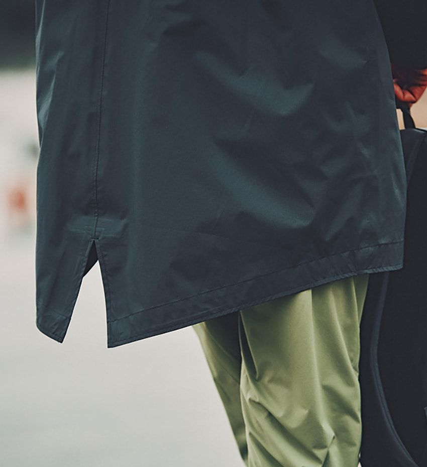 特徴的なのは深く被れる“バズーカフード”。激しい風雨でも視界とプロテクションを高いレベルで両立してくれる。首元のベンチレーション、大きめのフロントポケットなど、ディテールの完成度も高い。それでいて全体を軽量に仕上げている点が素晴らしいのだ。