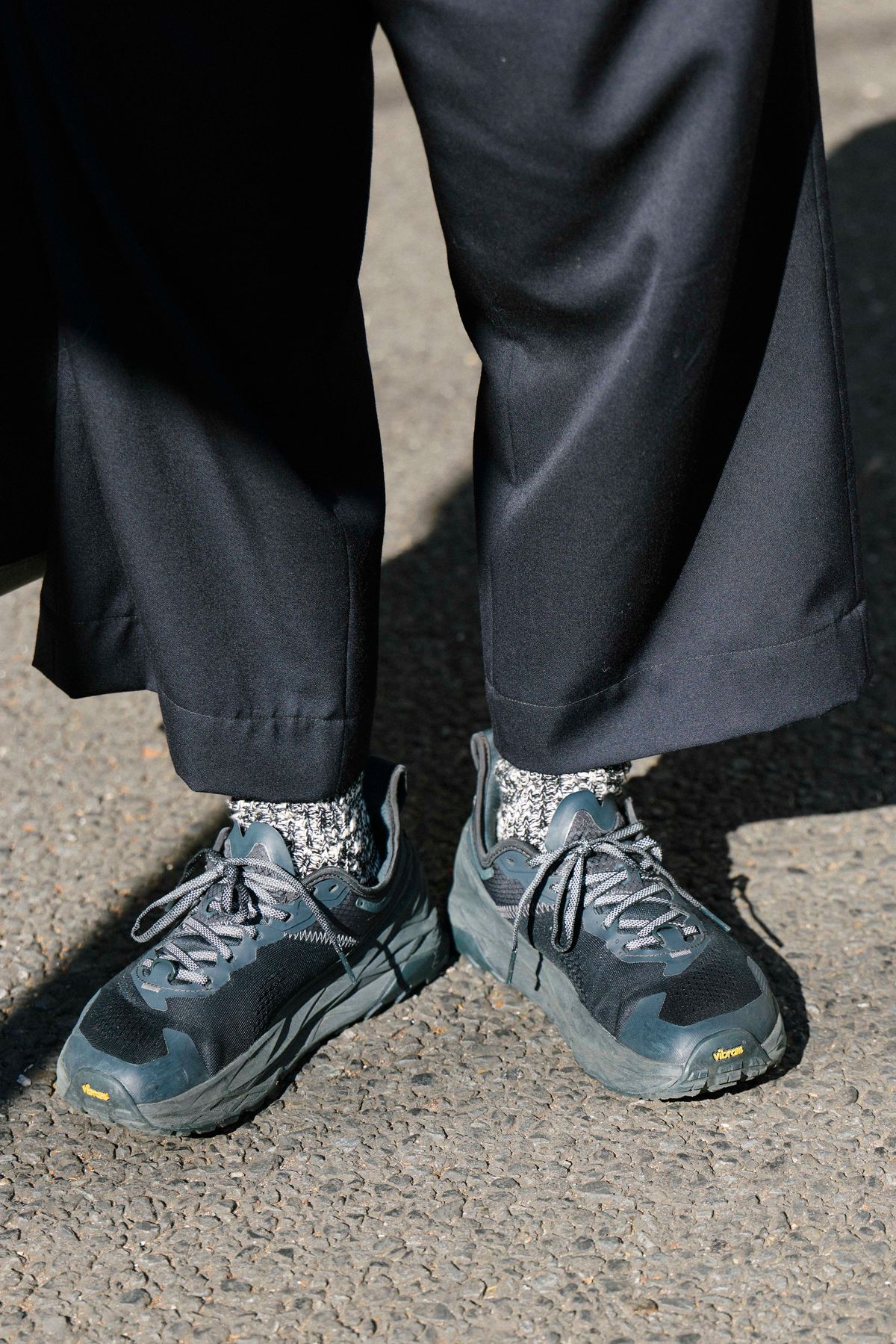 ▶︎小原さんのスナップをすべて見る小原崇弘さん(41歳)ジェンダーレスなオーバイサイズのジャケットは、ブランドの得意とするところ。そのユニークなルックスを際立たせるべく、パンツをはじめとする脇役はシックな黒子に徹する。