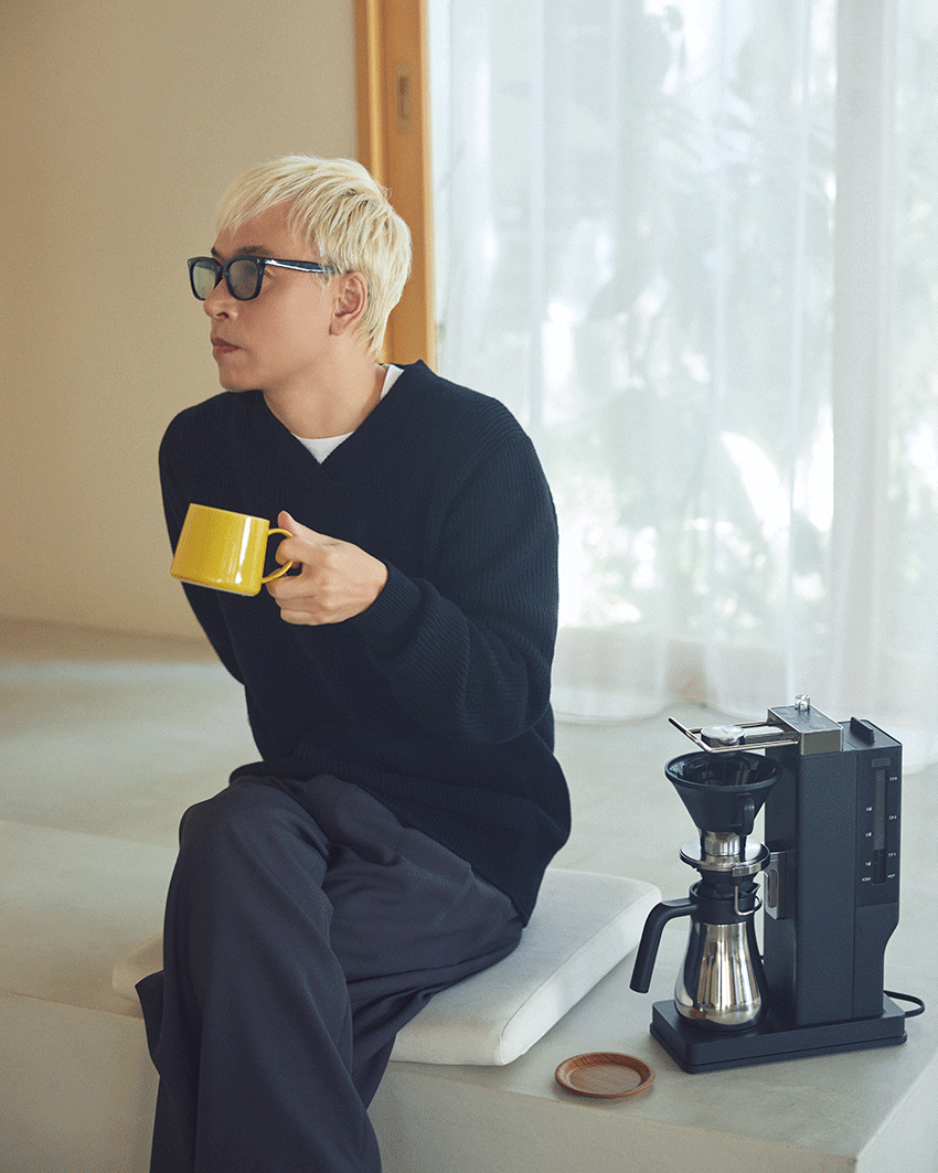 ドリップ式コーヒーメーカー「バルミューダ ザ・ブリュー」で淹れたコーヒーを片手に。都市空間に馴染むデザイン、そしてクリアな味わい。いつものコーヒータイムが、より豊かで実りあるものに変わる、特別な逸品だ。6万8200円/バルミューダ www.balmuda.com