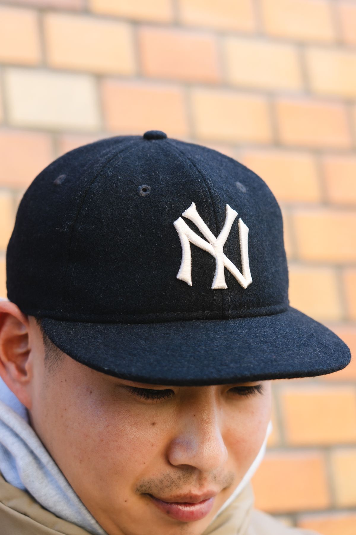 立ち上がりのいいフードが向かう先には、コーデュロイ製のキャップが。その色合いが、パーカ胸元の刺繍とさりげなくマッチ。これだけで十分、こなれて見える。