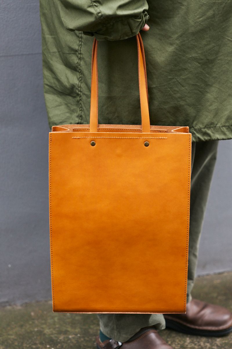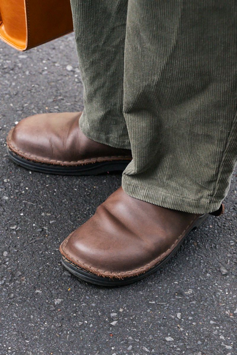 ▶︎ウエノさんのスナップをすべて見るウエノさん(37歳)注目のフィッシュテールを主役に、アーシーかつワイドにまとめたウエノさん。バッグと靴で異なる方向のブラウンレザーを取り入れて、大人っぽく落ち着いた雰囲気を纏わせた。