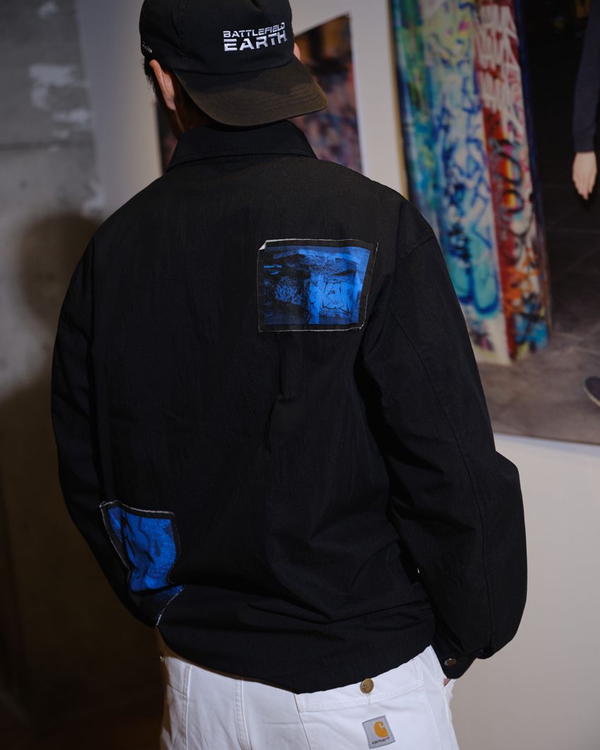 ジャケット=アンダーアール × ダン・ボルトン パンツ=eYe ジュンヤ ワタナベ マン×カーハート シューズ=ナイキ キャップ=ボーイズオブサマー