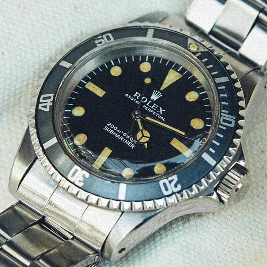 「ミラーダイアルだとどうしても主張が強くなるので、マットダイアルを狙いました。さらにエイジングがいい塩梅の個体という観点で探し始めて、出会ったのがこのRef.5513。自分が好きなUSネイビーのヴィンテージや、それをモチーフにした服にも過不足なくマッチする点が気にいっています」。