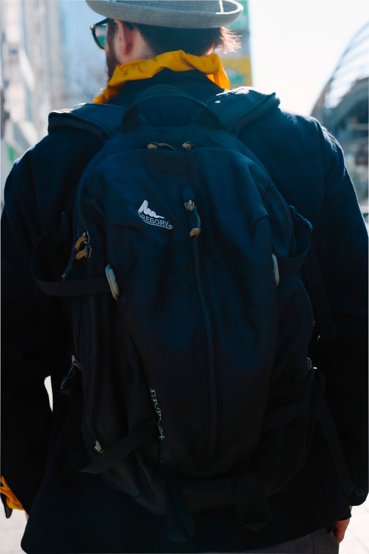 アウトドアブランドを活用する山口さんが選んだのは、グレゴリーの「バックパック ミューア24」。街でもアウトドアでも使い勝手の良いバックパックは一つ持っておくと重宝しそうだ。