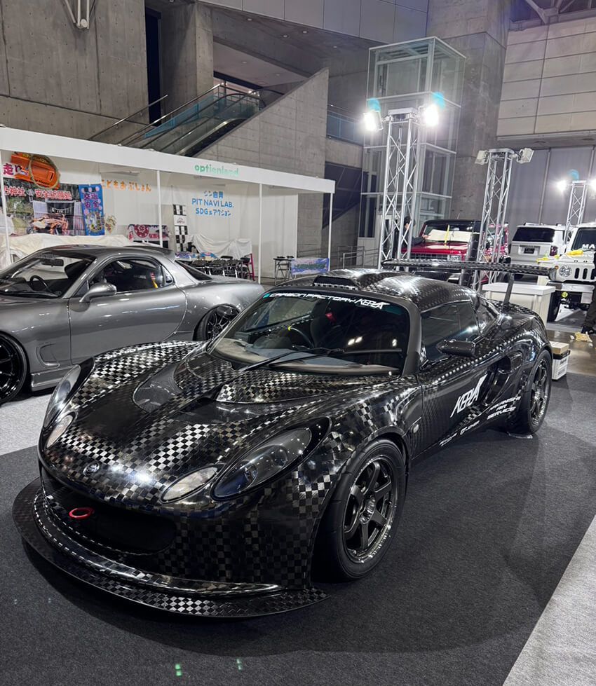 カーボンファクトリー ケプラが仕上げたロータス エキシージ。F1等の車両と同レベルのフルドライカーボン化が施されています。