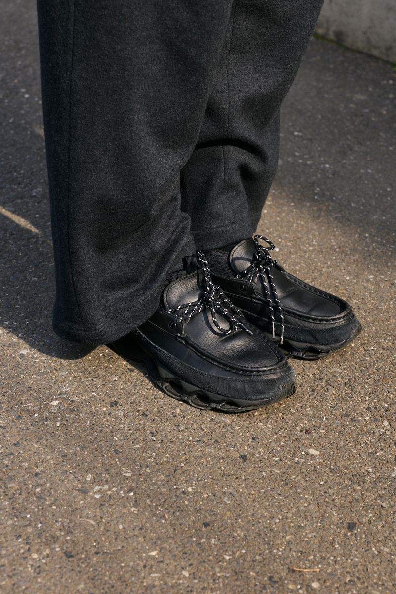 ③ シャカシャカ素材をモードに解釈する、黒のワントーン