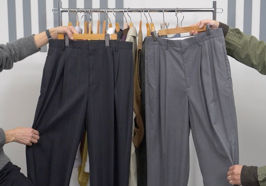 (左から)スラックス4万2900円/イレーヴ 03-5785-6447、スラックス2万8930円/エイチ ビューティー&ユース 050-8890-9491
