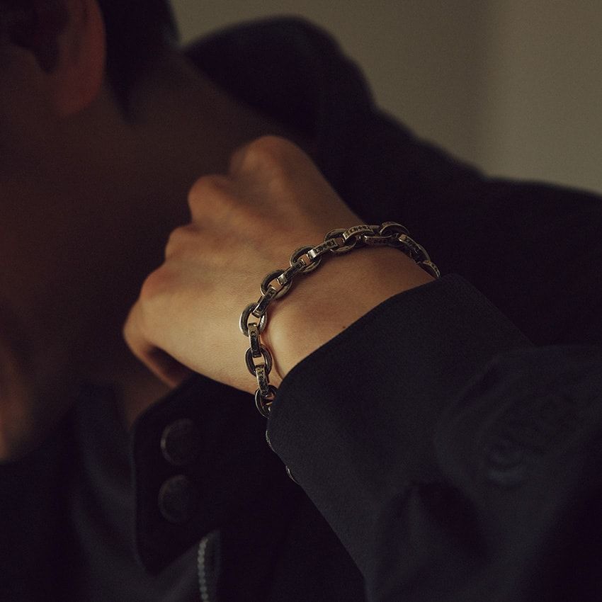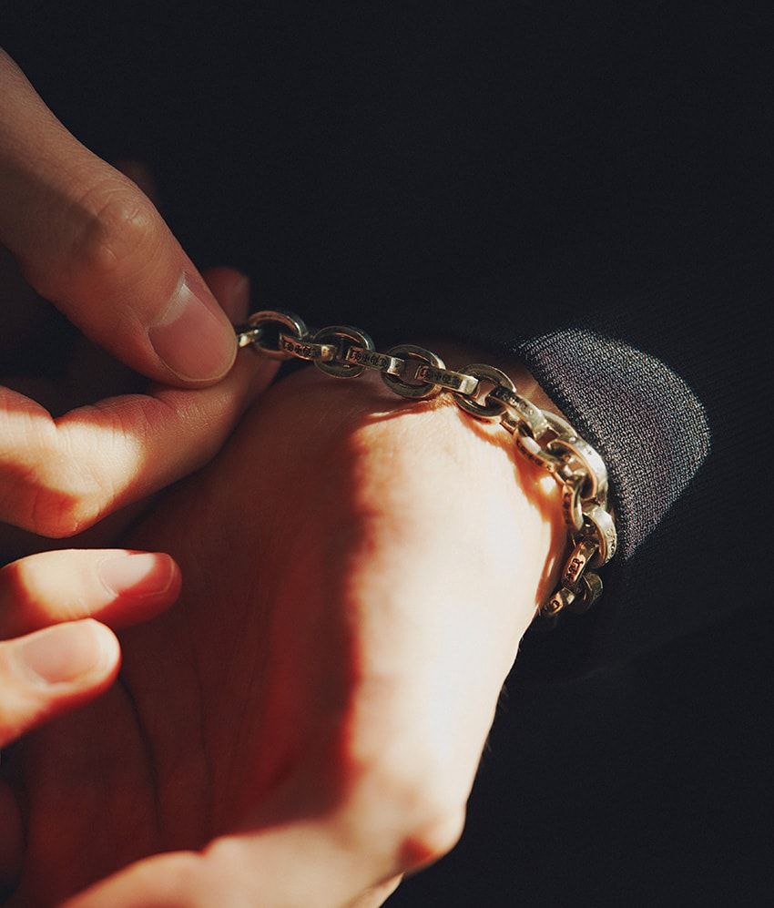 人気のペーパーチェーンがワイドにアップデート。従来のものより、存在感を増しながらも主張しすぎず、これもまたいいサイズ感に。職人が施す、繊細な刻印にも目を奪われる。