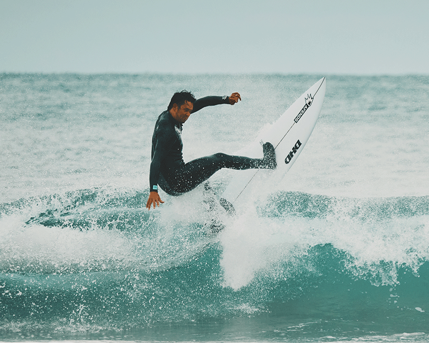 「ライディングで人々を魅了するだけでなく、海から上がっても、誰かに影響を与えうるプロとしての佇まいを大切にしたいんです。そのうえでデニムは格好のアイテム。普段ピックアップするのはブラックかダークブルーのワイドパンツで、トップスは状況に応じて選択。カジュアルシーンでは黒か白のTシャツを選び、ビジネスカジュアルのような出立ちが求められる場面ではシャツを羽織ります」