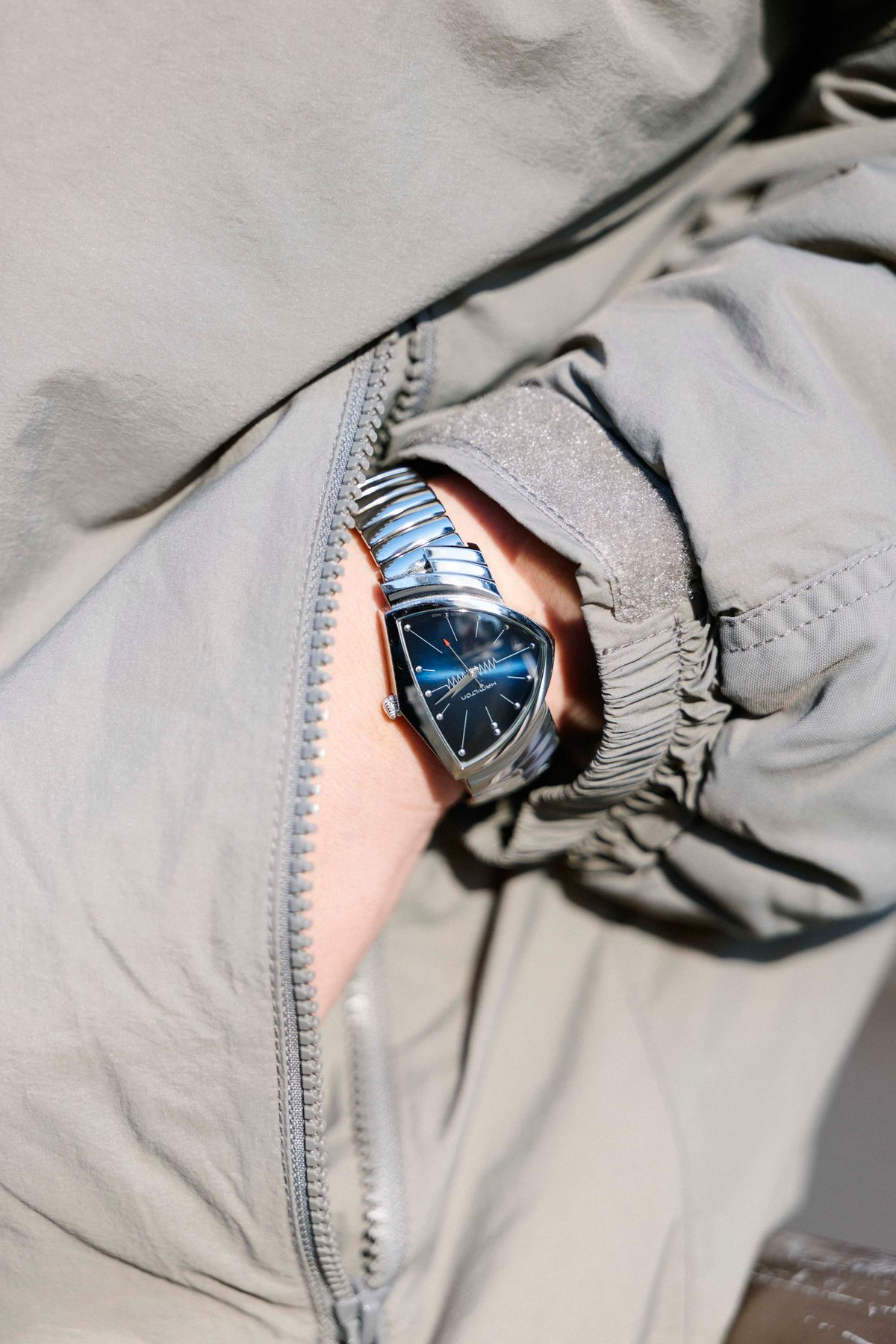ジャケット=フリークスストア スウェット=チャンピオン パンツ=リーバイス シューズ 、帽子=ともにヴァンズ 眼鏡=ゾフ 腕時計=ハミルトン