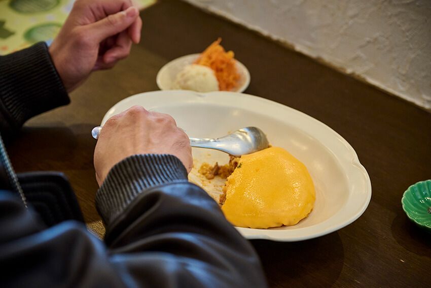 まず、艶やかで、フワっとしている見た目に心を捕まれました。もちろん味もすごいんです。デミグラス、トマト、ホワイトの3種類のソースが卵の中に層になって入っているから、食べ進めるたびに味の表情が変わっていく。衝撃を受けましたね。最後まで“美味しい”が更新されていくというか」。