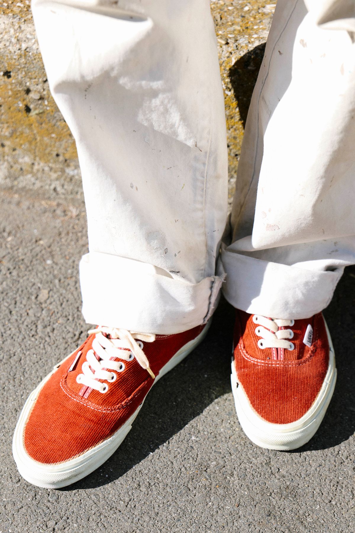 ⑤ デザインの強さを中和する、古着パンツの「枯れた色気」