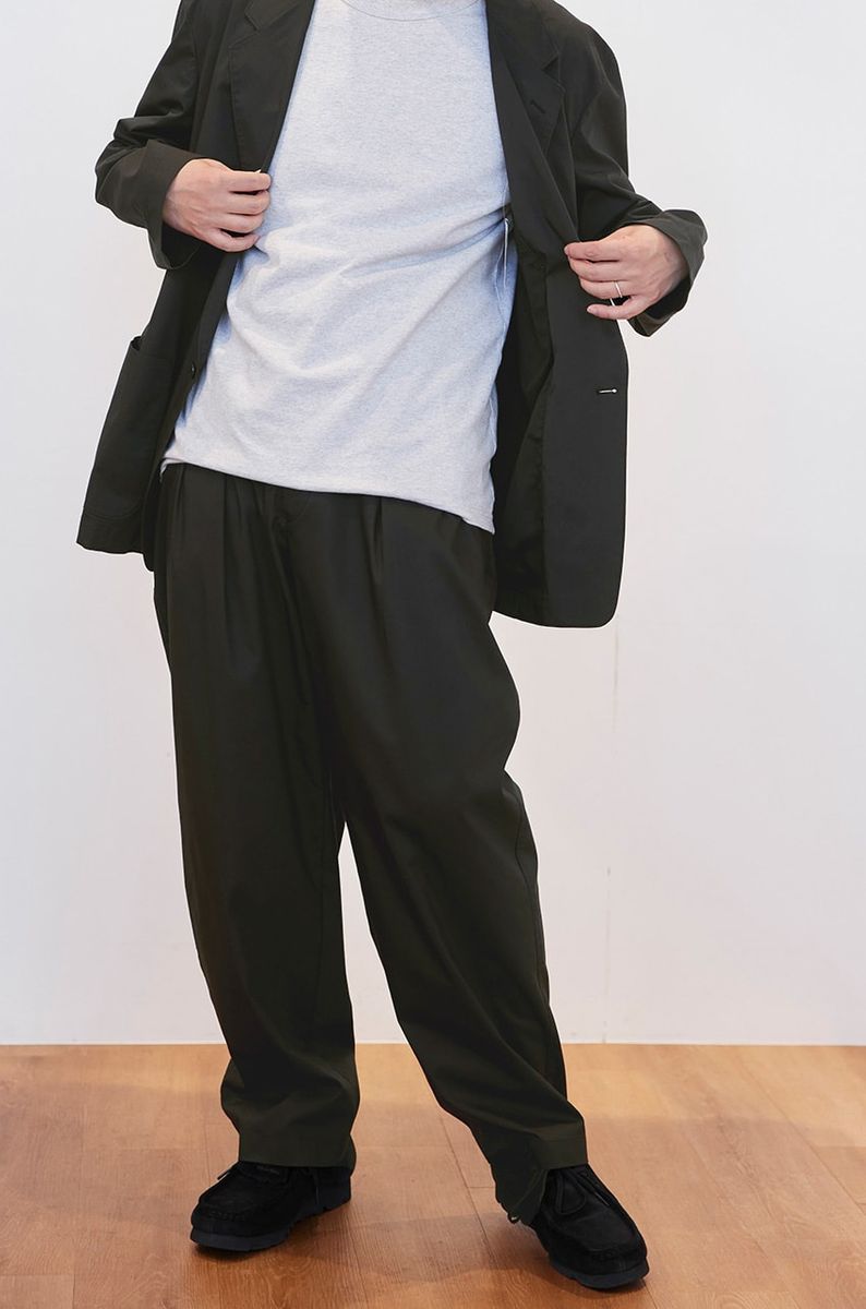 ブラックとブラウンはセットアップ対応なので、ジャケットと合わせてラフに着こなすのもよさそうだ。