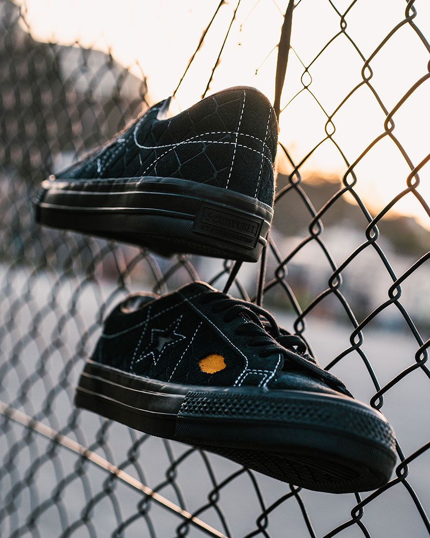 ベースとなるのは、コンバースを代表する名作スニーカー「ワンスター」をスケート仕様にアップデートした「ワンスター SK」。2018年に東京で結成されたHeel Collectiveとの協業により、チームの世界観を反映したデザインに仕上げた。