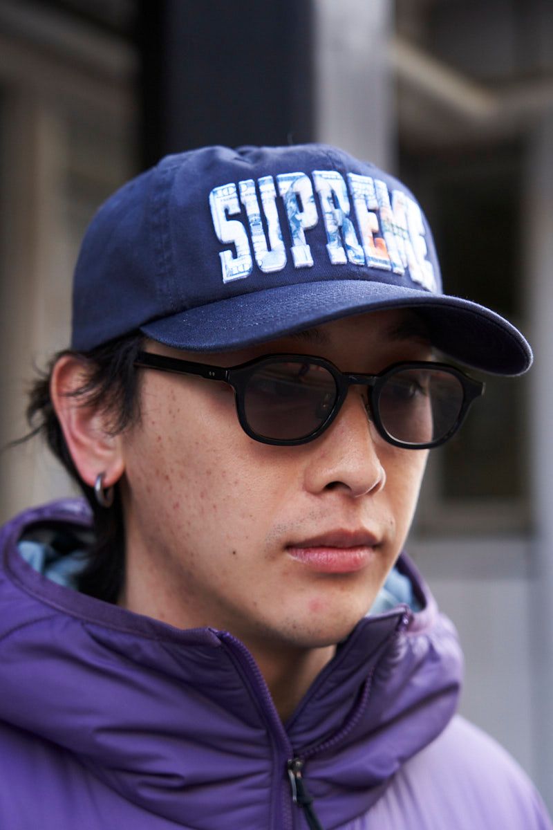 ▶︎レンさんのスナップをすべて見るレンさん(26歳)SUPREME。頭上に輝く7文字のロゴが、まるで印籠のようにコーディネイトに説得力をもたらす。100ドル紙幣をアレンジしたデザインも、思わずニヤリとさせるさすがの仕上がり。