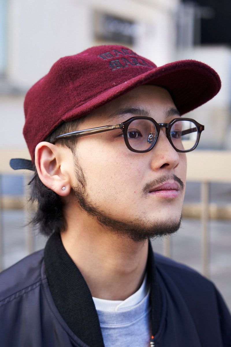 ▶︎ソウさんのスナップをすべて見るソウさん(25歳)またもワコマリアのトップスを纏ったコーディネイトだが、3人目のソウさんはキャップも同ブランドのもの。MA-1の胸ロゴと、色は違えど強烈なシナジーを発揮する。