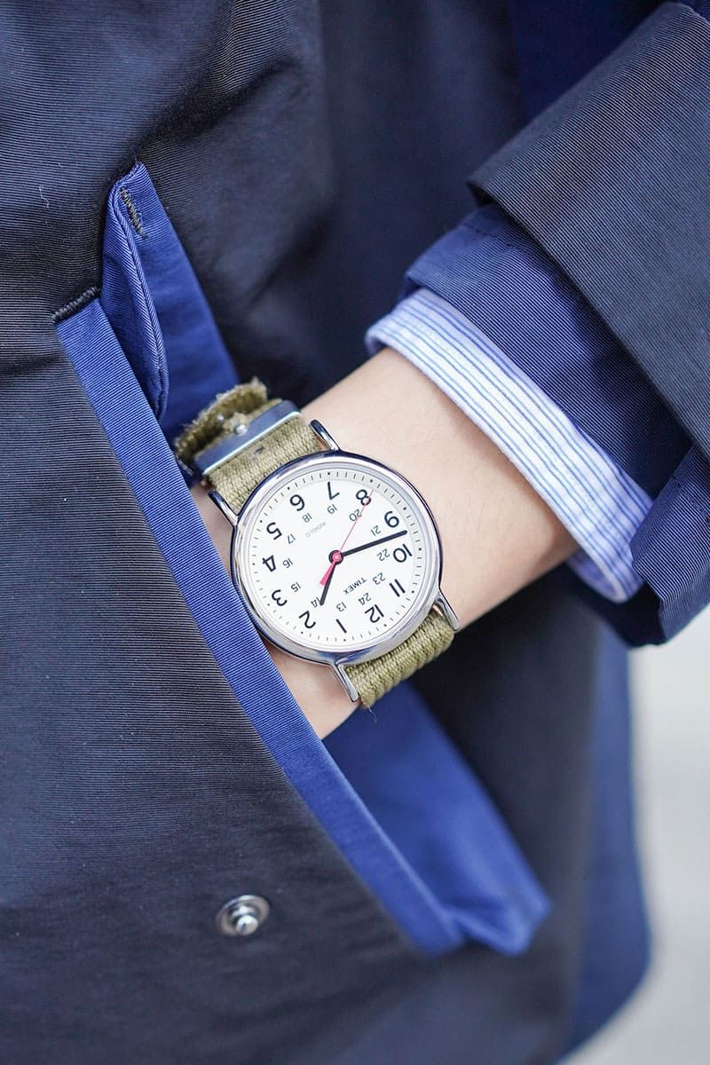 アウター=アンルート パンツ=ナナミカ 腕時計=タイメックス リング=ヴィンテージ