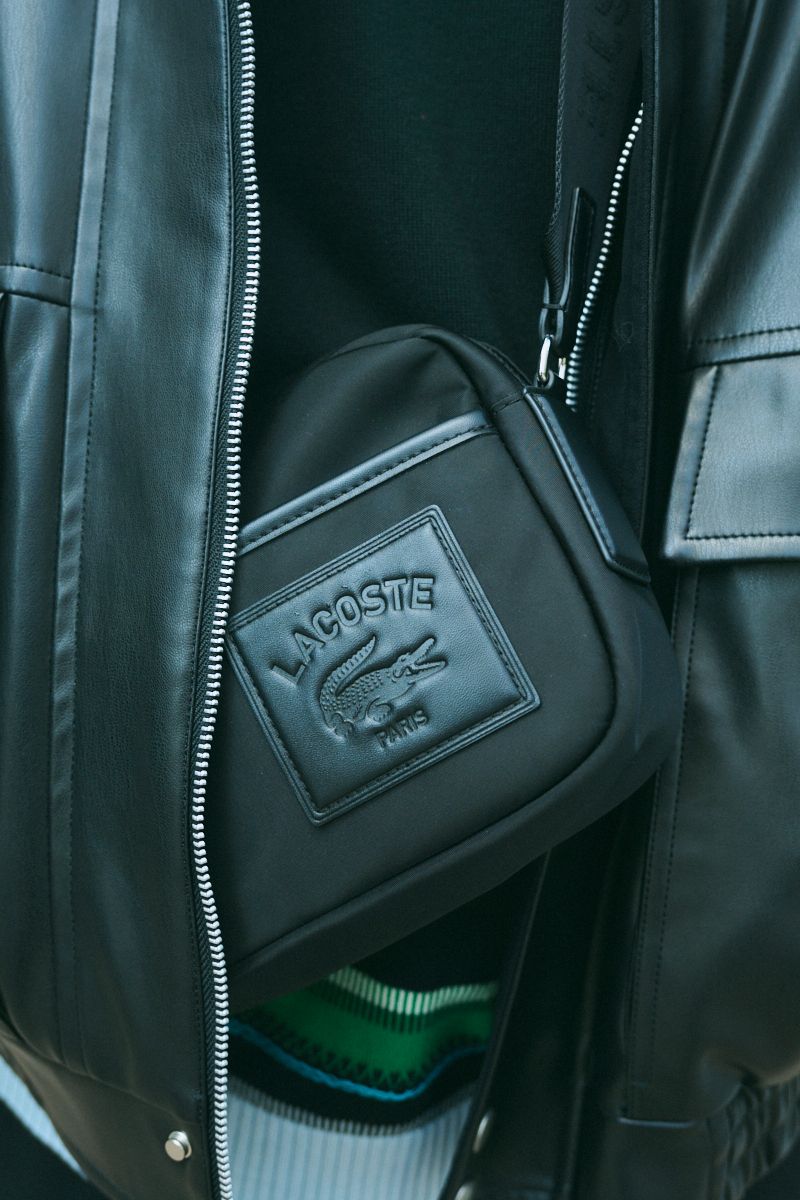 ラコステのバッグが放つスポーティなクリーンさが、レザー特有のストリート感を絶妙に中和。ベーリングの時計など、シンプルながらもエッジの効いた小物使いが秀逸だ。