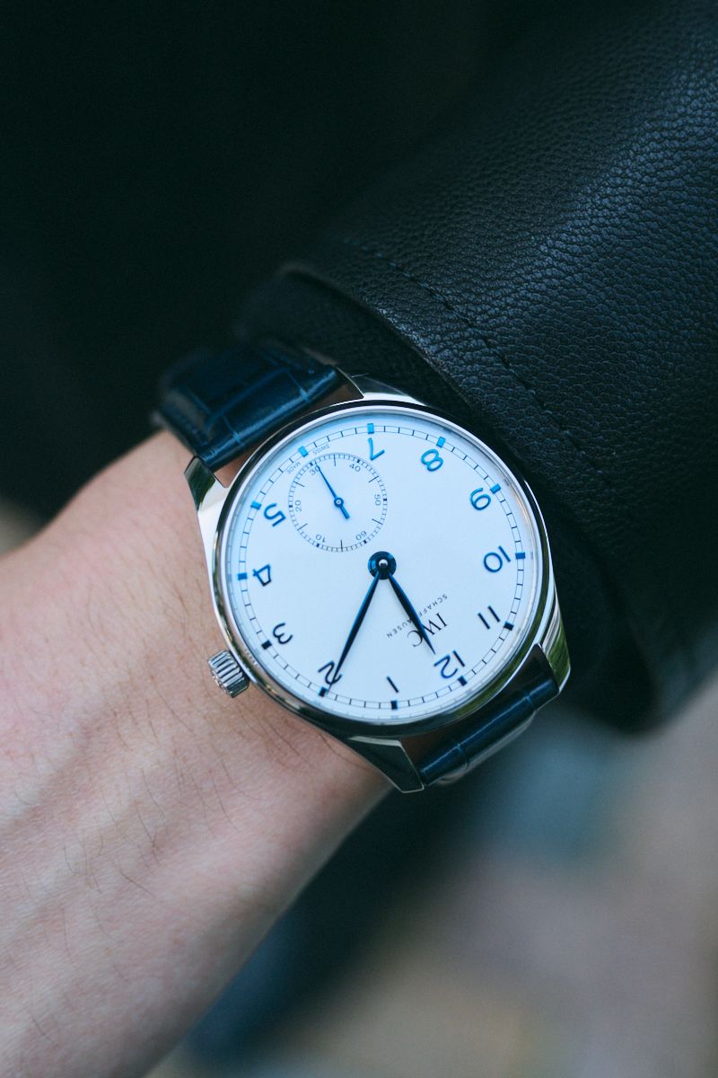 足元のリーガルやIWCの腕時計など、クラシックな名品を添えることで、20代らしいモードな感性と大人の品格を同居させている。
