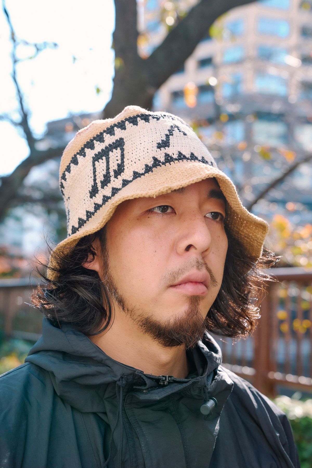 我が道をいくワイルドスタイルに見えて、実は繊細な色合わせが楽しい。キャップの編み柄とヴァンズのチェッカーフラッグが絶妙にリンクする点も、粋な美学を香らせる。