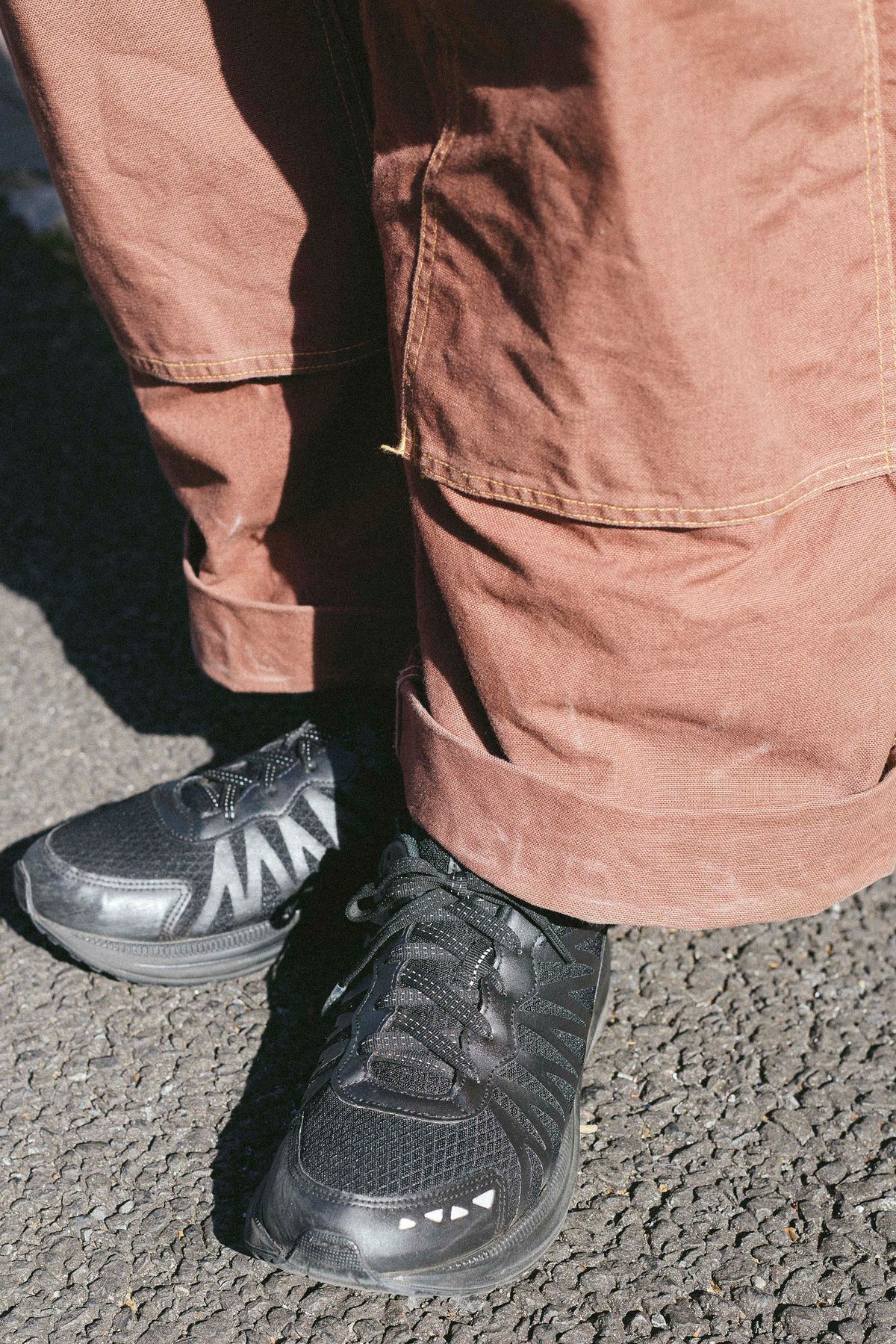 それでもひと味違う洒落感を醸すのは、ボーダーのインナーを選んでタックインしているから。ボーダーの赤みをトレッキングシューズとリンクさせ、統一感もしっかり意識。