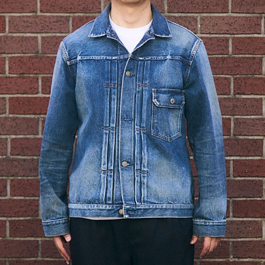 ジャケット=ワイパー Gジャン、カットソー=ともにコモリ パンツ=古着 シューズ=クラークス 帽子=ニューエラ 眼鏡=ノチノオプティカル
