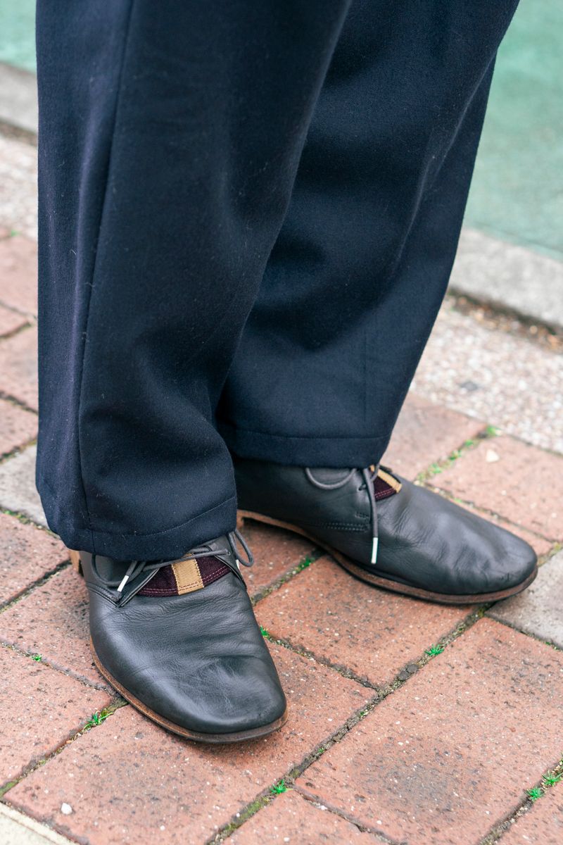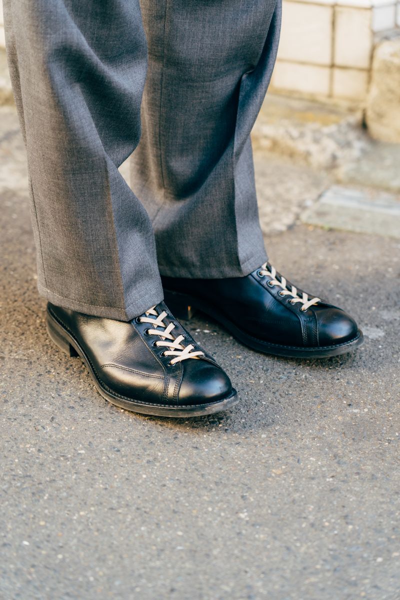 つまり、メガネとシューズ以外はオールユーズド。絶妙なサイジング、見目麗しいブルー&グレーのカラーバランス。キレイに見えるポイントは、その辺りの巧みさであろう。