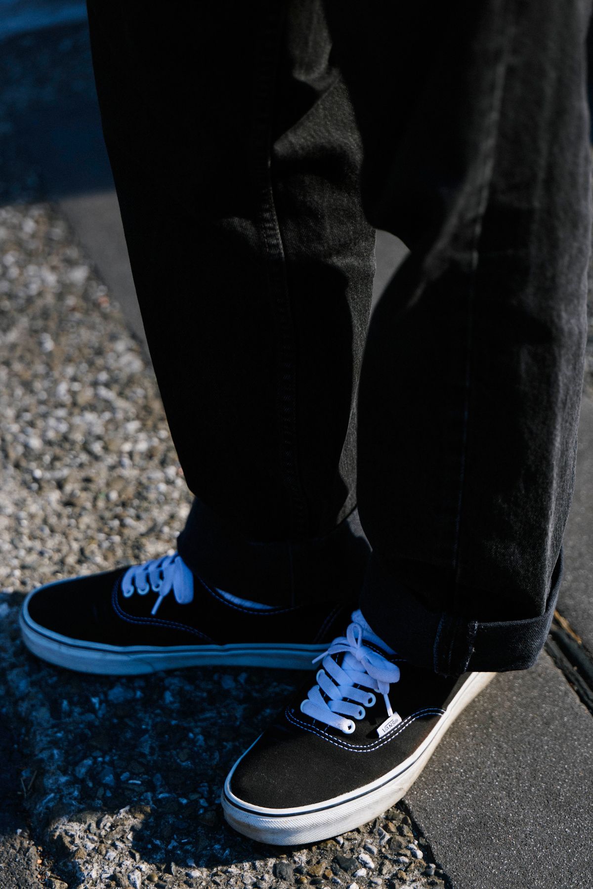 ⑤ 上半身のインパクトを、落ち着いたデニム&ヴァンズで受け流す
