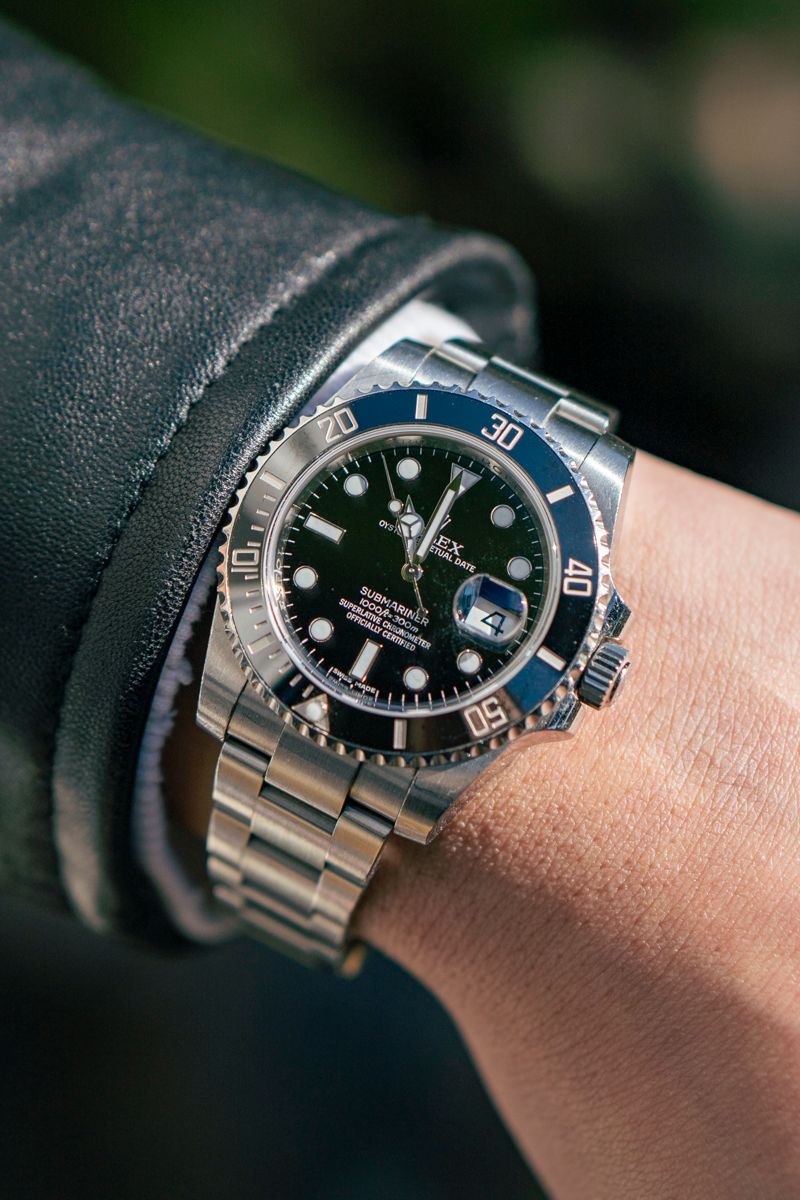 足元のナイキで軽やかさを出しつつ、メゾン マルジェラのバッグやロレックスの腕時計といった名品で大人の品格を証明した。