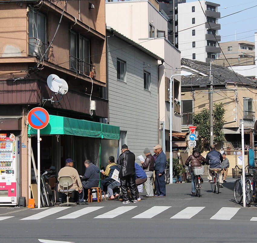 吉野通り沿いには、立ち食いの寿司店や焼き鳥店があり、当時はよく人だかりが出来ていた。現在も営業している店もあるが、当時はノミ行為の窓口になっていた。ノミ行為とは競馬や競輪などの公営ギャンブルを利用して私的にギャンブルをすることだ。もちろん違法だ。