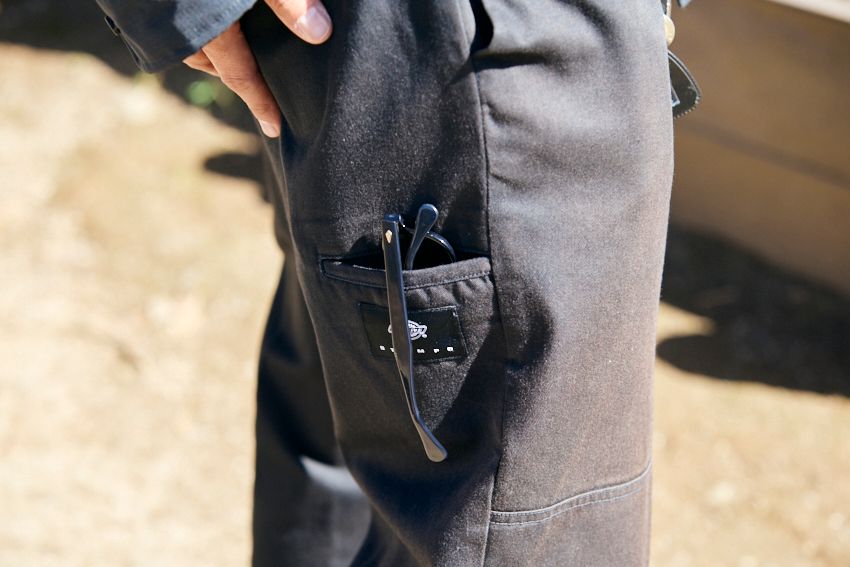 パンツは、ディッキーズとLAを拠点にするスタンプドのコラボ。タフなワークパンツの代名詞であるディッキーズをベースにしながら、センタークリースが入っているのがポイントだという。