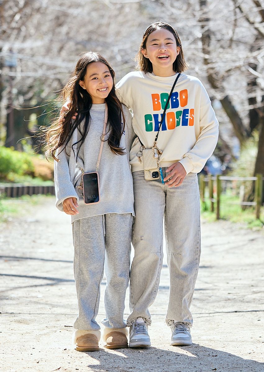 「長女のリリーはスポーツを頑張っていて、服装もスポーティなものが好きですね。今日はデニムですが、普段はハーフパンツも多くて動きやすさ重視。次女のサラはちょっと派手めな服やゴスっぽい服も好きで、今日の髪だって自分で巻いてますから驚きますよね(笑)。