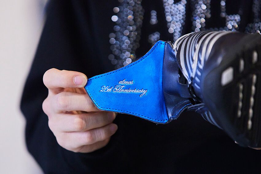 福田 カラーリングは日本代表の“サムライブルー”から着想を得ています。サッカーへ傾ける情熱を込めて「ブルースピリット」と名付けました。あと、シュータン裏には「atmos 25th Anniversary」と筆記体で入れています。昨年が25周年だったので、その記念モデルですね。