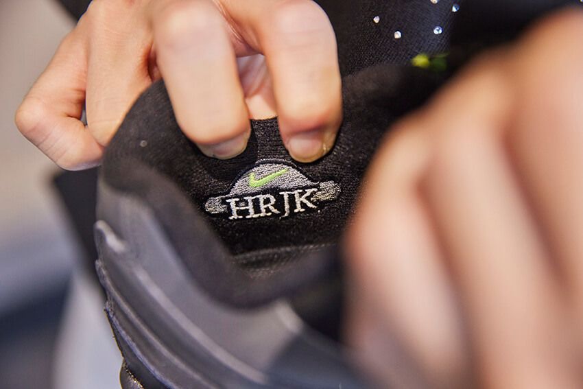 ーーあ、ロゴが入っていますね……HRJK?福田 その通りです。原宿通りの入り口にある「原宿通り」のアーチをサンプリングしたロゴなんです。アトモスのホームである原宿への思いを、こうした見えない部分のディテールに込めています。