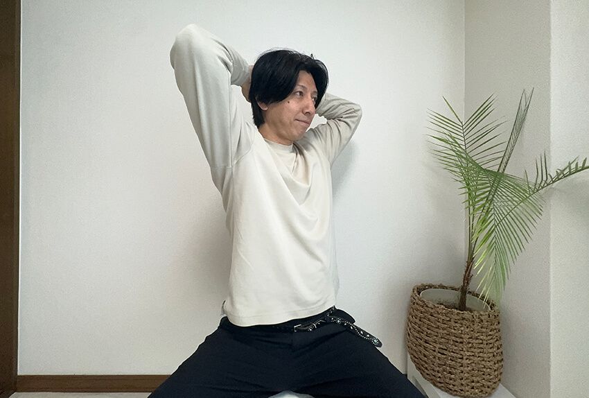3つ目は、肋骨の動きをよくするストレッチです。肋骨が開くことで呼吸を深く整えることができます。