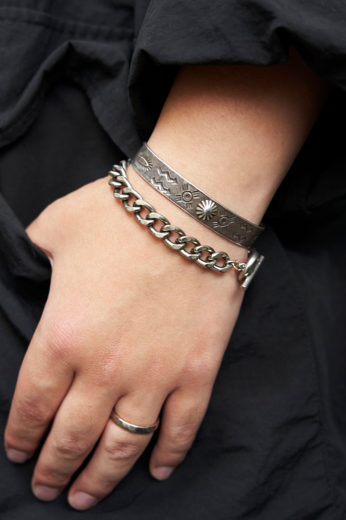 ラフ&シック。そんなスタイルの終点には、やはりラグジュアリーなアクセサリーがよく似合う。雲上ブランド、エルメスのシェーヌ・ダンクルであれば文句なし。勝負あり。