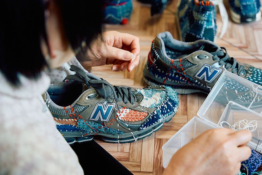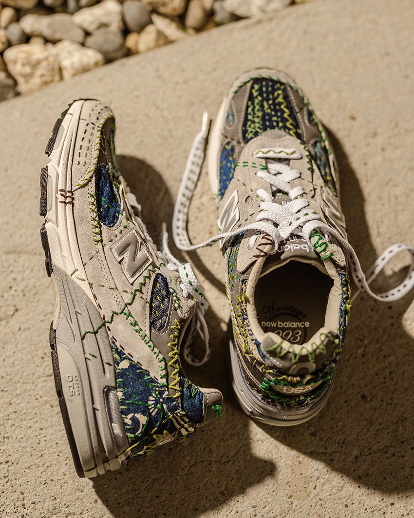 ベースとなるのは、ニューバランスの中でもクラシックな人気を誇る「993」のグレーカラー。そこにSASHIKO GALSが独自の刺し子パターンを手作業で施し、自然から着想を得た「森」をテーマに仕上げた。刺し子の工程には1足あたり約40時間を要し、すべてが職人による一点物。スニーカーでありながらアートピースのような存在感を放つ。