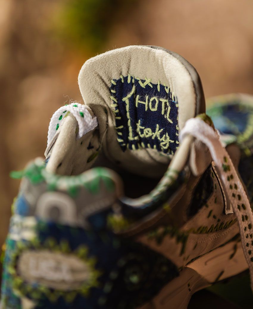 今回の企画は、4月22日(水)のアースデイに向けて環境について考える「アースマンス」の取り組みの一環。サステナビリティを共通の理念とする両者が協働し、伝統技法と現代のスニーカーカルチャーを掛け合わせた一足が誕生した。