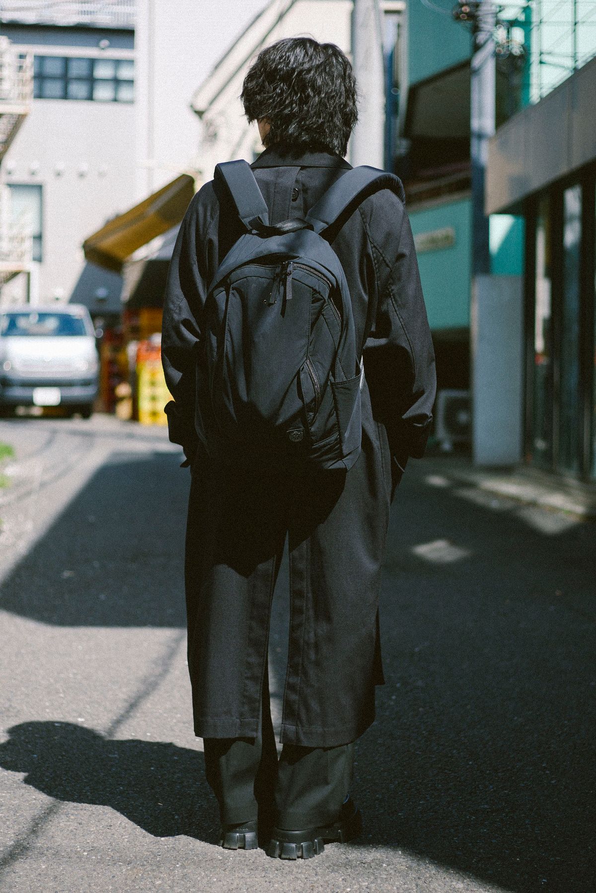 どんな装いにも馴染み、それでいて持つ者のこだわりが背中に滲み出る。いつの時代もスベリ知らずの黒バックパック。漆黒の相棒が背中にあれば不思議とひとつのスタイルとして完結するのだ。