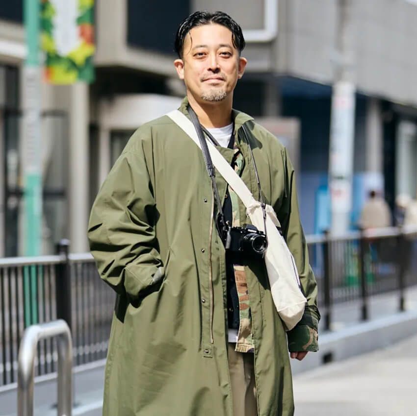 ▶ワタナベさんのスナップをすべて見るワタナベコウスケさん(43歳)ユニクロのコートにGUのワイドパンツを合わせた、高い審美眼が光るスタイル。ミニマルなデザインのコートに対し、パンツのワイドな裾が作るクッションが、着こなしに程よいリズムを生んでいる。ゴーシャラブチンスキーのキャップやジェントルモンスターの眼鏡といった、エッジの効いた小物使いで「普通」に終わらせないセンスは流石だ。