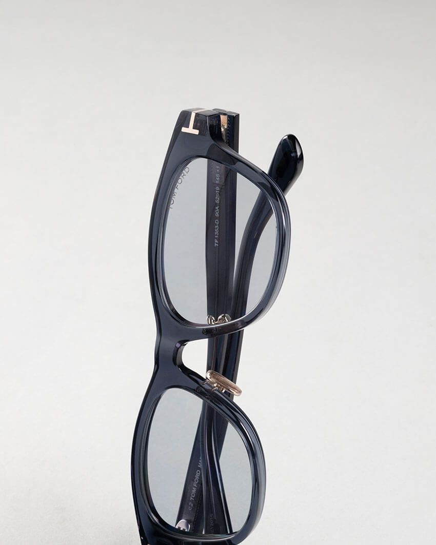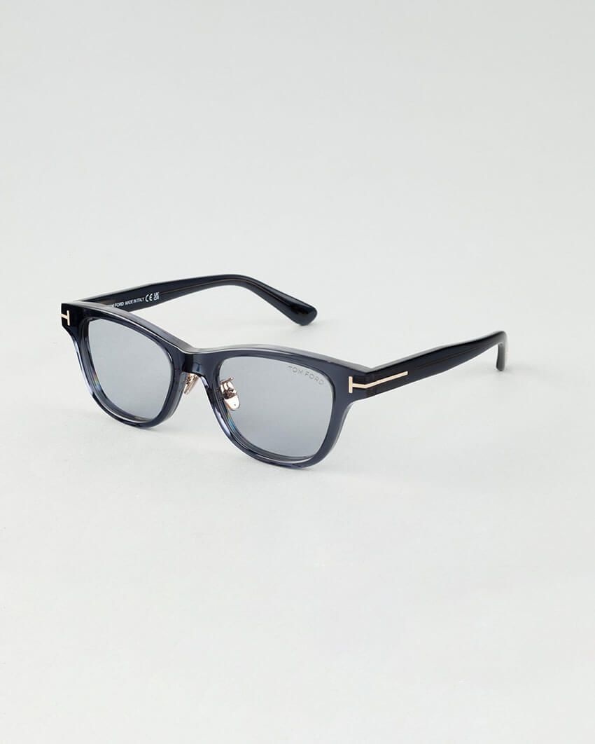 フレームの素材には、イタリアはマツケリー社のアセテートから、ネイビーモノカラーをセレクト。クラシックな表情とシックかつ新しさを感じるカラーがセンス良く同居した傑作だ。6万8200円/トム フォード アイウェア(ポーカーフェイス https://store.pokerface-web.com/Page/Feature/tfe.aspx)