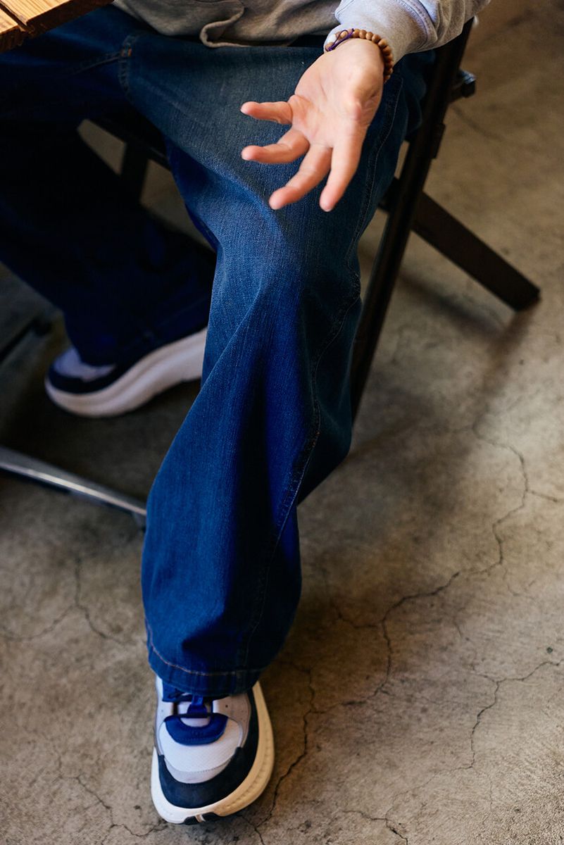 「さっき聞いてもらった『なんで太いパンツが好きなんですか』を考えてたんですが、改めて思うと、もしかしたらルーツはビー・バップ・ハイスクールにあるのかもしれません(笑)。自分は真面目な野球少年でしたけど、ビー・バップ世代なんで、あの“ボンタン”のシルエットにはずっと憧れてましたね」。