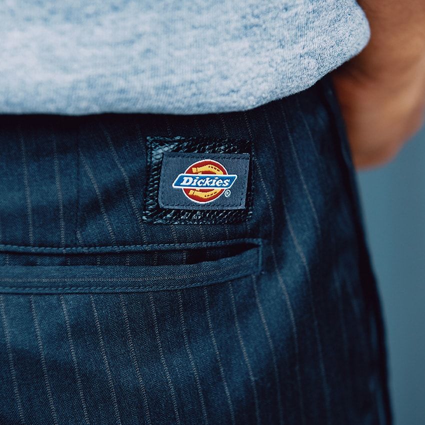 細番手のウール糸を使い、シックな印象を獲得したピンストライプパンツ。「適度に光沢があって、落ち感やドレープもキレイ。再設計されたテーパードシルエットも大人にちょうどいい」。